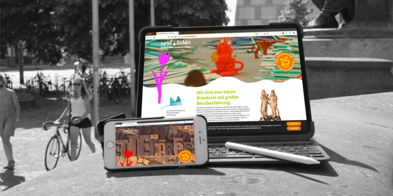 Für die unverwechselbar einzigartige und sehr spezielle lokale Digitaldruckerei April und Tochter in Freiburg im Breisgau haben wir eine ganz besondere animierte Website gestaltet. Unser Webdesign Ziel war dabei ein Monty Python Film Feeling zu erzeugen. Das Logo und die Logo Kompetenzzeile – den Claim – haben wir auch neu erfunden: „aprilundtochter Die etwas andere Druckerei in Freiburg“.